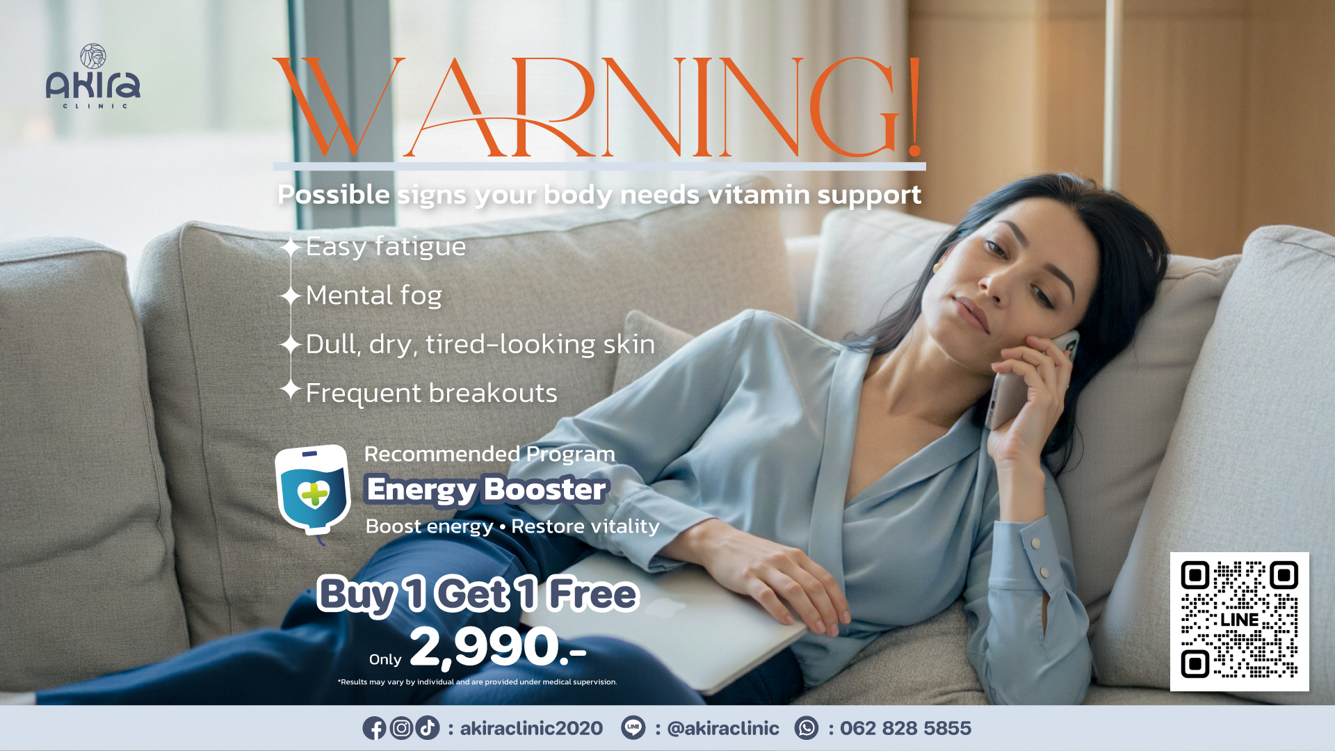 At Akira Clinic, we focus on holistic wellness care through medical assessment. Each vitamin support plan is personalized based on your lifestyle, physical condition, and individual needs—ensuring safe, balanced, and sustainable results.